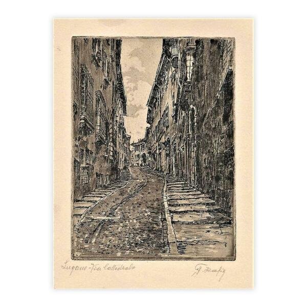 Lugano Via Cattedrale - Acquaforte firmata