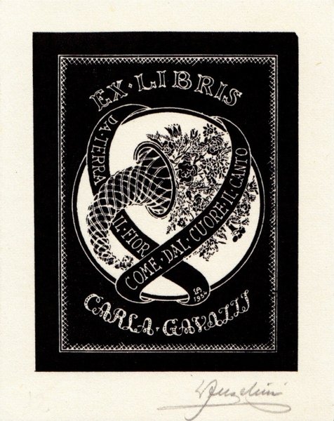 Luigi Angelini. Ex Libris Ex - Libris originale Carla Gavazzi firmato.