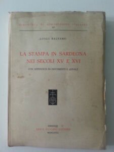 LUIGI BALSAMO LA STAMPA IN SARDEGNA NEI SECOLI XV E XVI L. S. OLSCHKI 1968