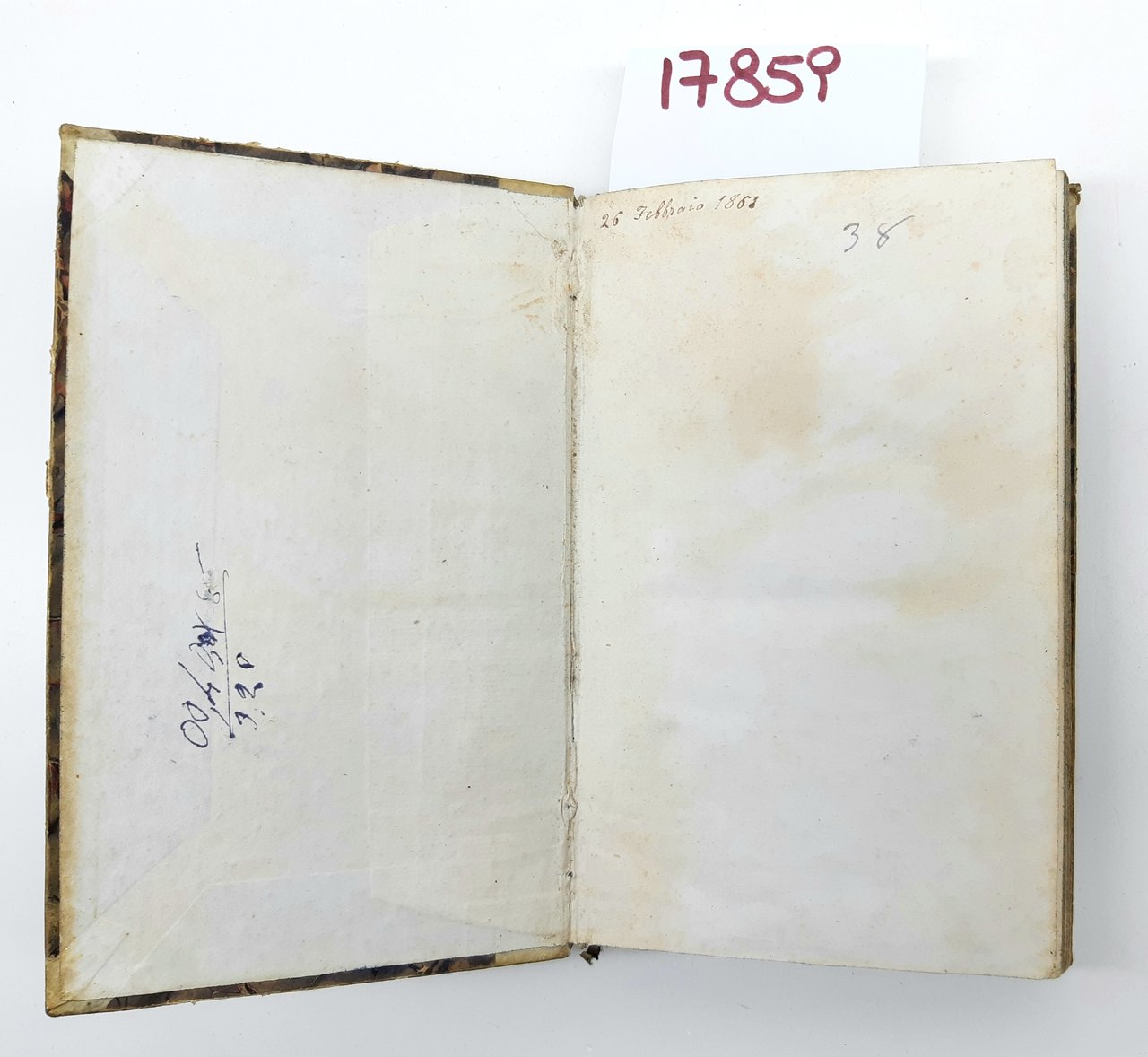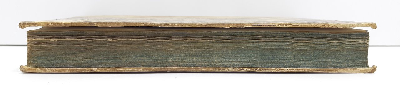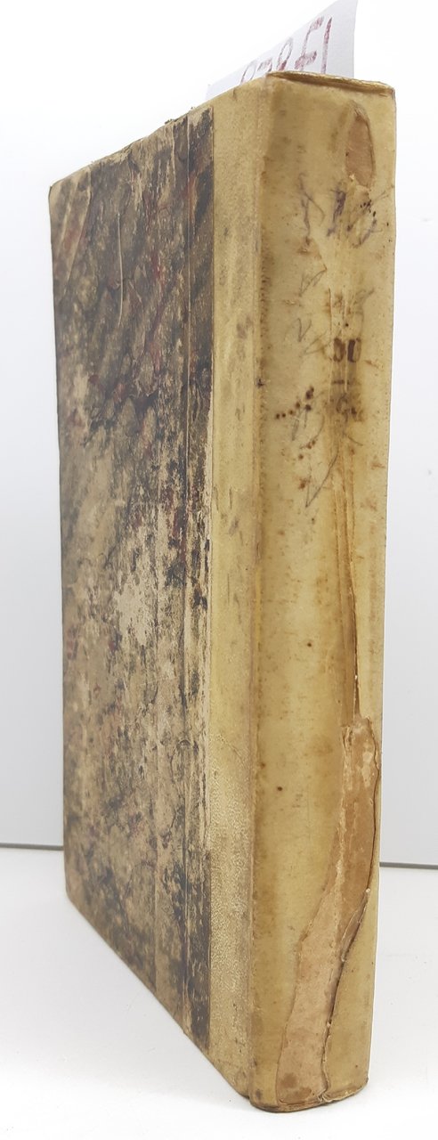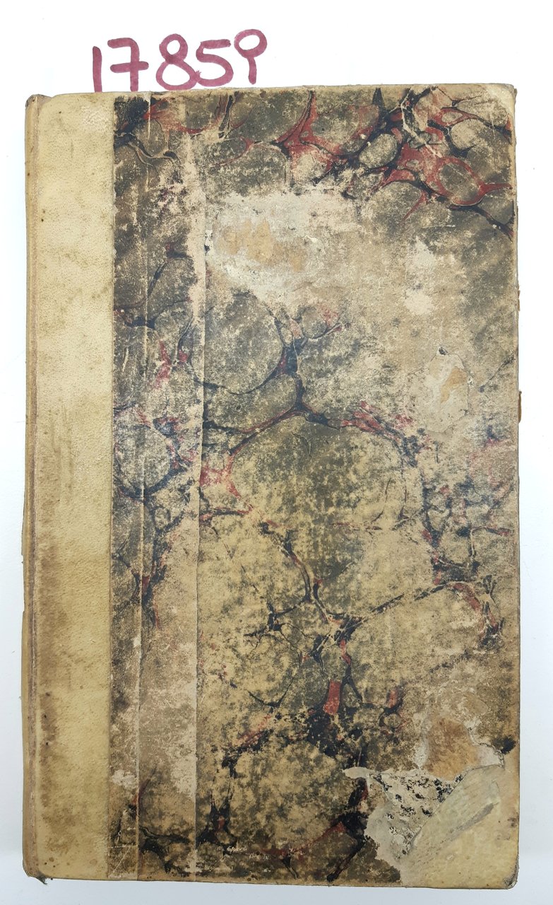 legatura rigida in mezza pelle con piatti marmorizzati in condizioni accettabili con abrasioni e mancanze, dorso in pelle con strappo e mancanze, titolo scritto a matita, tagli bruniti spruzzati impolverati quelli superiori, fogli di guardia con data scritta a penna e a matita, interno in discrete condizioni, timbro di possesso al frontespizio, alcune fioriture le pagine interne che non vanno a disturbare la lettura, alla terza di copertina disegno a penna numero pagine 372 + 31, margini inferiore delle ultime pagine irregolare, dimensioni centimetri 18,6 * 12