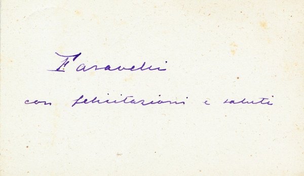 biglietto manoscritto e firmato dell'Ammiraglio Luigi Faravelli.