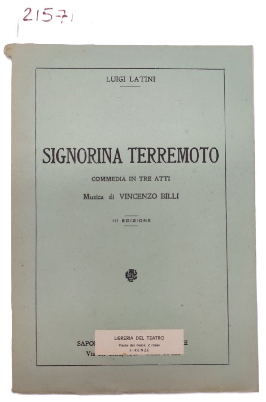 Luigi Latini Signorina terremoto commedia in tre atti 3° ed. Libreria del Teatro 1947