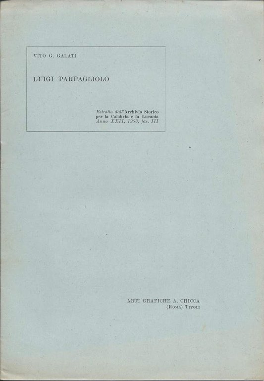 Estratto dall'Archivio Storico per la Calabria e la Lucania, Anno XXII, 1953, fas. III, in 8, punto di metallo, pp. 6. Leggera piega longitudinale ai piatti e alle carte, fior. al piatto post., ordinari segni del tempo alle carte, buone condizioni.Luogo di pubblicazione TivoliEditore Arti Grafiche A. ChiccaAnno pubblicazione 1953Materia/Argomento Storia, Storia locale, Calabria, Lucania, Luigi Parpagliolo ***Due to bureaucratic reasons, books dated over 70 years old cannot be immediately exported, please contact us before placing the order.***