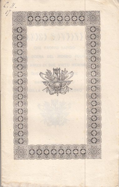 In-8 (Cm 22,5 x 14,5), pp. 11, brossura editoriale con cornice. MOLTO BUONO