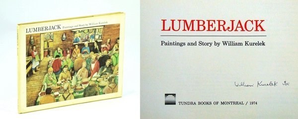 Signed, without inscription, by William Kurelek upon title page. Stated first printing. "As a young man Kurelek [1927-1977] signed up as a lumberjack in the Canadian bush. Here he has drawn on his memories and experiences and in detailed text and 25 stunning full-color paintings he describes a way of life that has virtually disappeared. Here we see how the lumberjack used his tools to fell trees, buck the wood, and pile it into cords. Each man was paid for his own work, so more often than not he worked alone. However, there was a hearty camaraderie when the men returned to camp in the evening, to eat their enormous meals and swap stories as they lay on their bunk beds warmed by the old iron stove." - dust jacket. Oblong 28.5 x 22cm. Book clean and unmarked with very light wear to publisher's tan cloth. Binding tight. Small faint sticker ghost to upper front corner of dust jacket which otherwise bears moderate wear and soiling and is now preserved in glossy new archival-grade Brodart. A special copy of this heartwarming piece of Canadiana written and illustrated by one of the nation's most beloved artists. Bibliographic reference: Bishop p.1019. Book