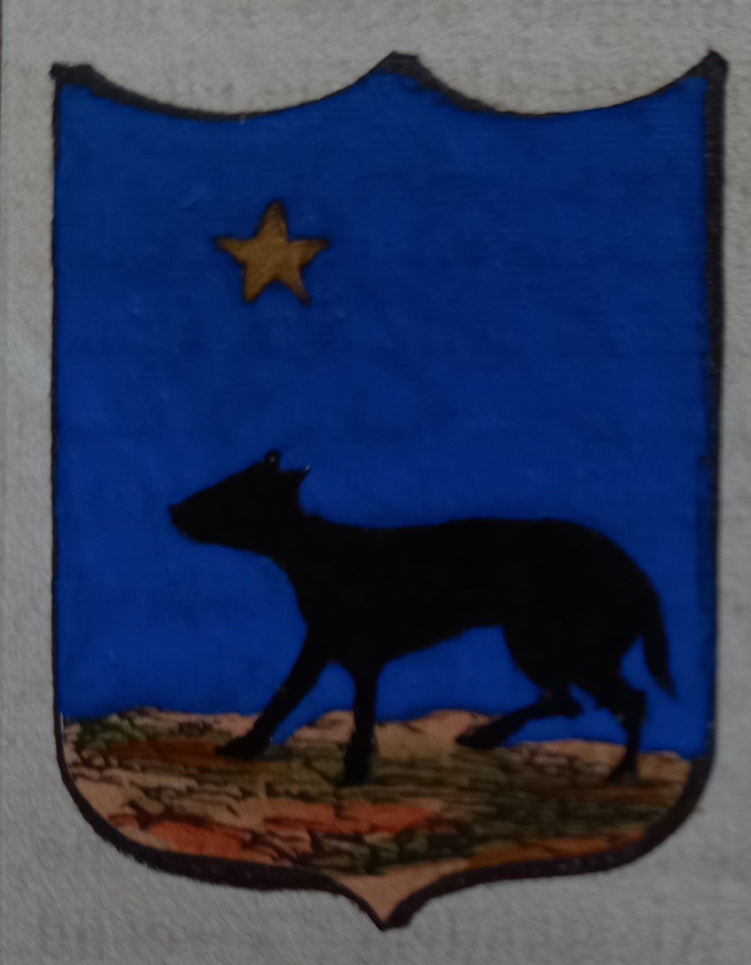 Piccolo stemma comunale colorato a mano d’epoca (cm. 3,8 x 3,2 ca.). Stralcio dal Dizionario Corografico illustrato dell’Italia, edito a Milano nel 1868. Ogni stemma di questa raccolta è inserito in una o più pagine di testo con la descrizione della località, notizie storico - geografiche e statistiche (numero degli abitanti e degli elettori, guarnigioni della Guardia Nazionale, ecc.). Spesso il testo è redatto da studiosi locali o dai sindaci, con maggiori, interessanti notizie.