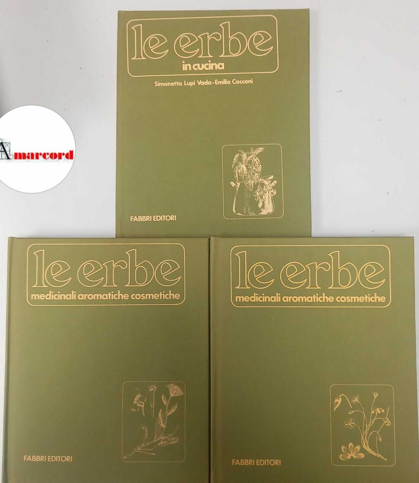 Lupi Vada Simonetta e Cocconi Emilio, Le erbe in cucina (3 voll.), Fabbri, 1979, in-4, cartonato telato, illustrazioni colore. Ottime condizioni.