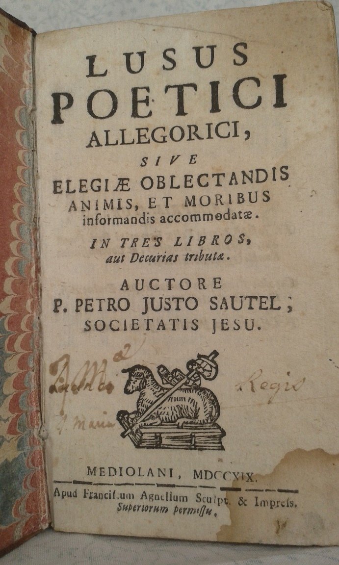 LUSUS POETICI ALLEGORICI sive ELEGIAE OBLECTANDIS ANIMI, ET MORIBUS INFORMANDIS ACCOMMODATAE in tres libros aut decurias tributae auctore P. P. J. S.