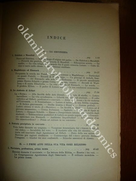 DESCRIZIONE: Società Editrice Internazionale Torino 1933, br. ed., pp. XXVI-586 in 8°, con un ritratto di Lutero all'antiporta e 12 tav. f.testo su carta patinata. Grisar, professore dell'università di Innsbruck, documenta la vita del religioso che fece fece tremare la Chiesa. Indice completo in foto. CONDIZIONI: Buone/Ottime, danni al dorso, vol. parzialmente INTONSO. PESO / WEIGHT: 845 gr. without package