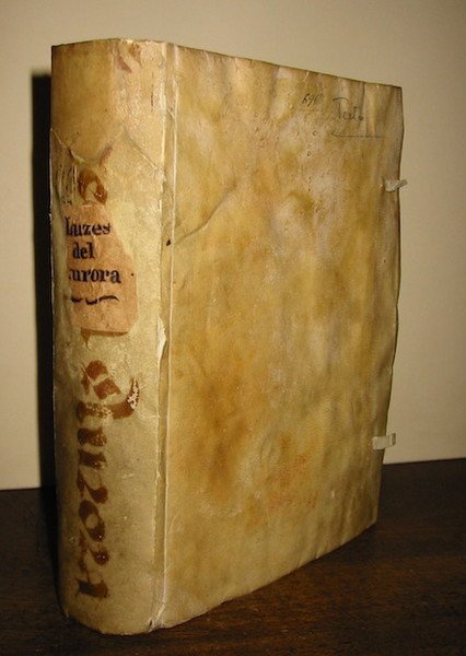 4to (cm. 20,3), 12 cc. (compreso frontespizio inciso e ritratto del Dedicatorio dell'opera, il 'Marques de Astorga'), 612 pp. (i.e. 568), 8 cc.nn. Con 3 tavv. calcografiche f.t. e 10 raffigurazioni di emblemi n.t. Fregi e capilettera xilografici. Legatura coeva in pergamena floscia con titolo ms. in grandi caratteri gotici e tassello cartaceo al ds. (tracce di legacci, piccola scritta recente sul piatto anteriore ed un restauro nella parte superiore del ds.). Salvo quattro carte leggermente brunite, esemplare in eccellente stato di conservazione. Rarissimo libro ad emblemi spagnolo che descrive le feste organizzate dal Marchese di Astorga, Vicere di Valencia, in occasione dell’indulgenza concessa da Papa Alessandro VII. L’opera contiene prose e poesie di vari autori in castigliano e catalano oltre alla commedia mitologica ‘La Azucena de Etiopia’ composta a quattro mani da José Bolea e Don Francisco de la Torre y Sebil. Palau VII, p. 49. Non in Praz. Cfr. anche Salloch William, catalogo ‘Renaissance and Baroque rare books of the 16th and 17th centuries’, n. 388.