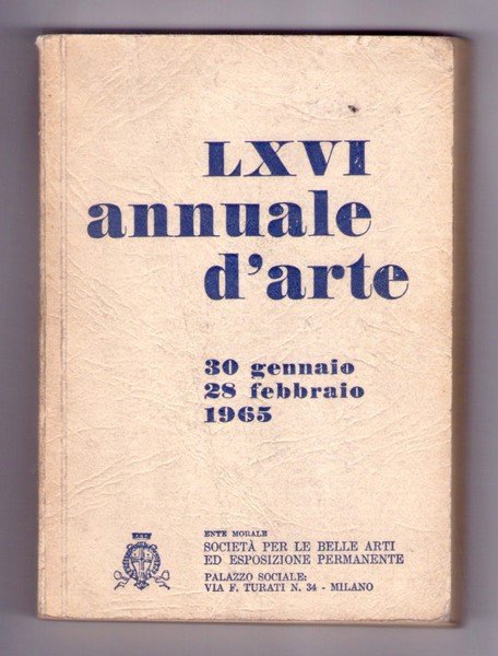 Note: In 16°, br. edit., pp 207,(3), con 132 tavv. ill. b.n. n.t. di opere di Aldo Carpi, Carlo Carrà, Michele Cascella, Piero Gauli, Remo Brindisi e numerosi altri; catalogo della mostra della Società per le Belle Arti ed Esposizione Permanente tenutasi a Milano dal 30 gennaio al 28 febbraio 1965; buon es.