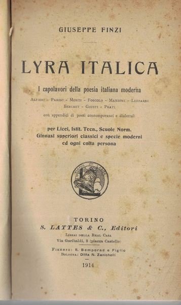 Giuseppe Finzi, Lyra italica. I capolavori della poesia italiana moderna