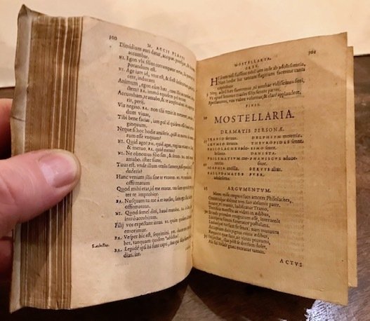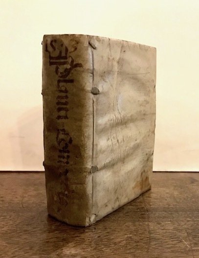 16mo (cm. 17,2), 847(1) pp. Frontespizio entro ricca cornice architettonica. Iniziali xilografiche n.t. Legatura coeva in pergamena floscia con unghie e titolo ms. in grandi caratteri gotici al ds. Entro cofanetto conservativo in mz. pelle con angoli. Nervi e titolo impresso in oro al ds. Timbretto di collezione privata (non leggibile) al frontespizio. Poche trascurabili sottolineature di antica mano, ma esemplare in ottimo stato di conservazione. Importante e ricercata edizione in piccolo formato delle Commedie nel testo curato da Joachim Camerarius, rivisto e corretto da Iohannes Sambucus sulla scorta di antichi manoscritti. Adams, P-1499; Br. Libr., p. 170.