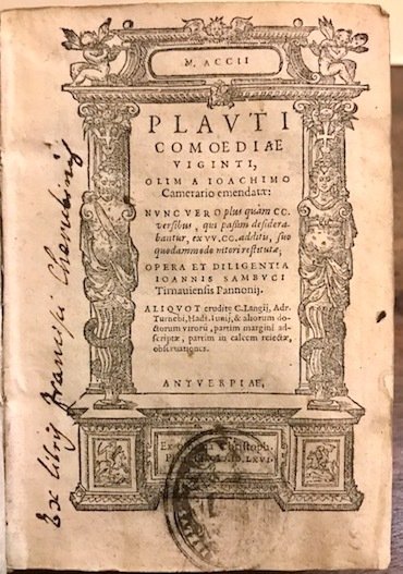 M. Accii Plauti Comoediae viginti, olim a Ioachimo Camerario emendatae: nunc vero plus quam 200 versibus, qui passim desiderabantur, ex vv. 200 additis, suo quodammodo nitori restitutae; opera et diligentia Ioannis Sambuci Tirnaviensis Pannonij.