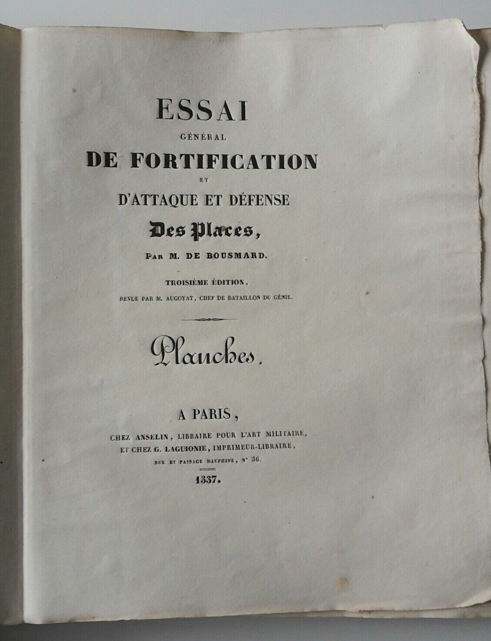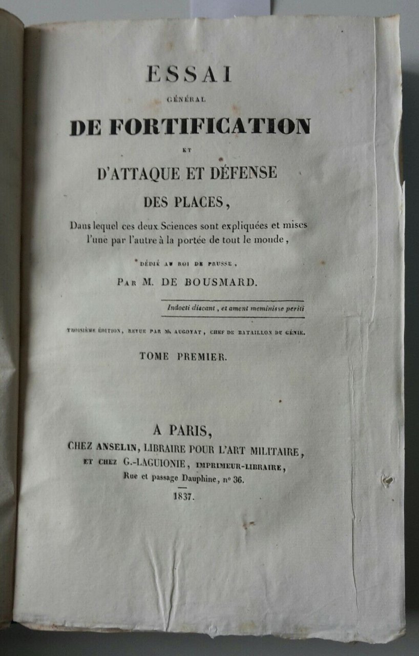 M. DE BOUSMARD ESSAI DE FORTIFICATION ET D'ATTAQUE DES PLACES ANSELIN 1837