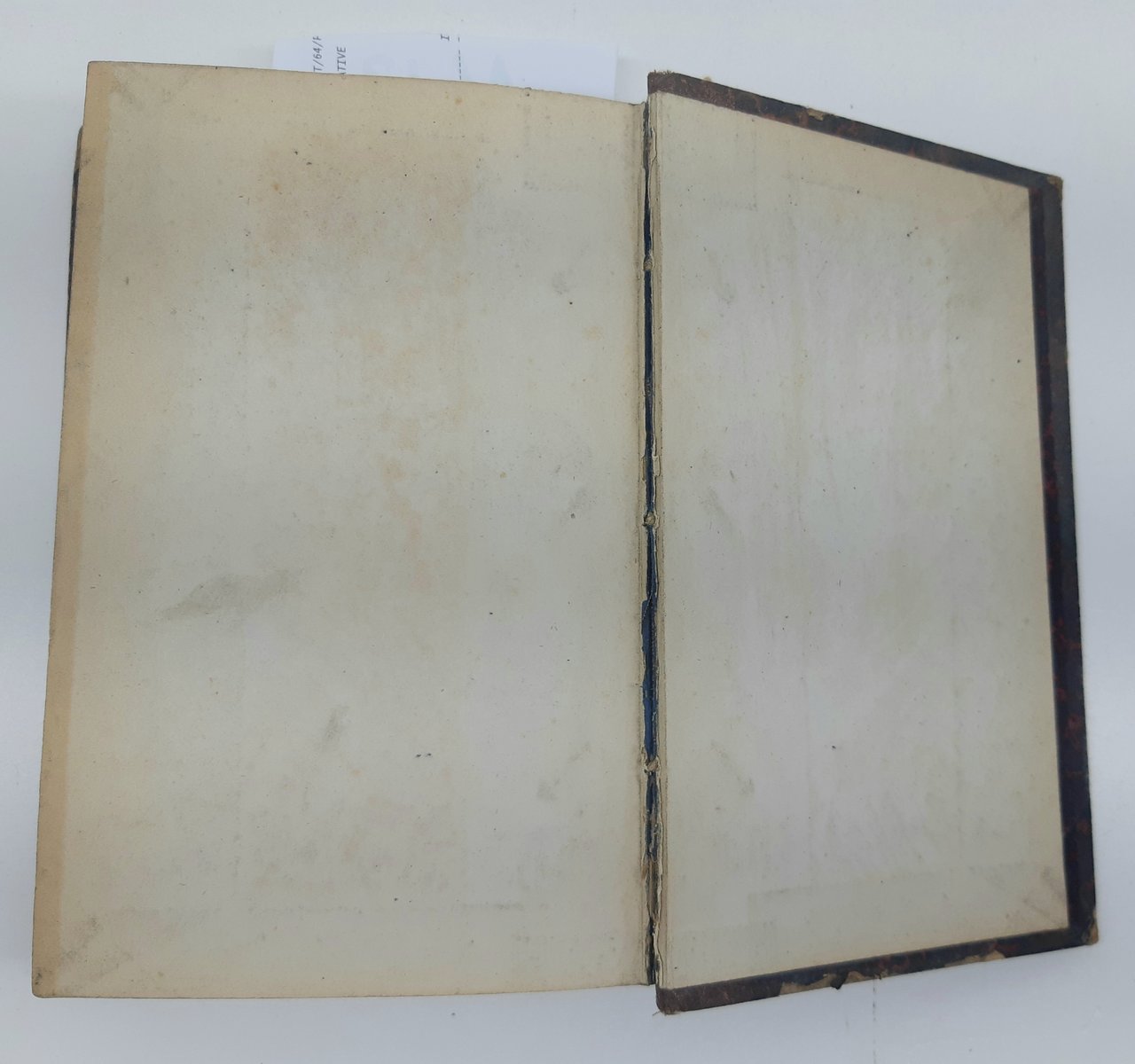 Legatura rigida editoriale in mezza tela con piatti marmorizzati e dorso in tela, in condizioni accettabili alcune abrasioni e mancanze ai piatti, dorso con foro, strappi riparati e titolo sbiadito, margini consumati, tagli bruniti con fioriture diffuse, impolverati quelli superiori, una mancanza al margine esterno dell'antiporta, vedere immagini, legatura a vista al frontespizio e all'ultima pagina, timbro della libreria al margine inferiore del frontespizio, pagine interne leggermente brunite con fioriture diffuse, all'interno due tomi, numero pagine 400 + 284 + numerose pagine bianche (solo su di una un'annotazione a penna) dimensioni cm 17,7 * 12,5