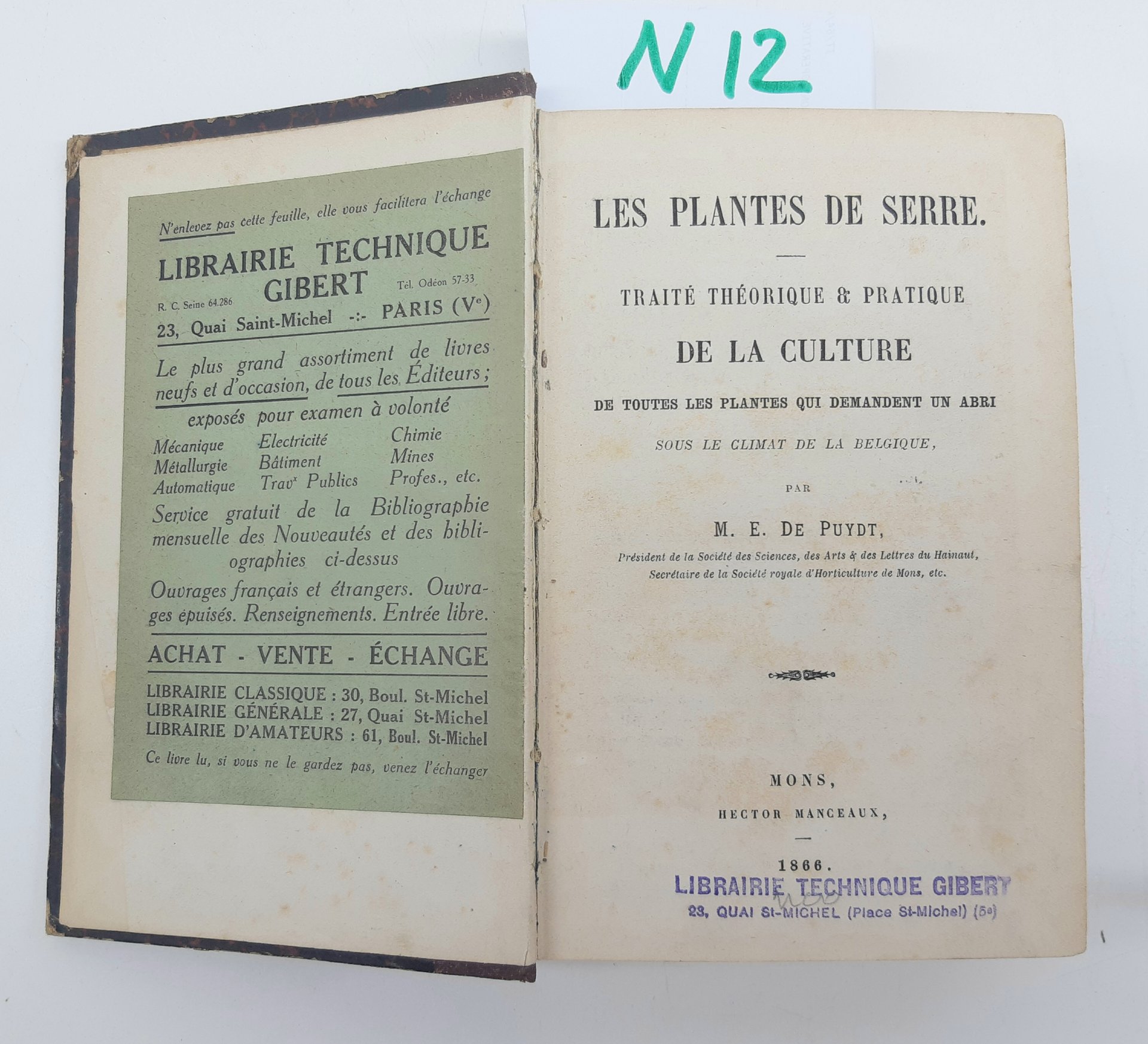M. E. De Puydt Les Plantes De Serre Traite Theorique A Praticque Tomo I E II E. Manceaux 1866