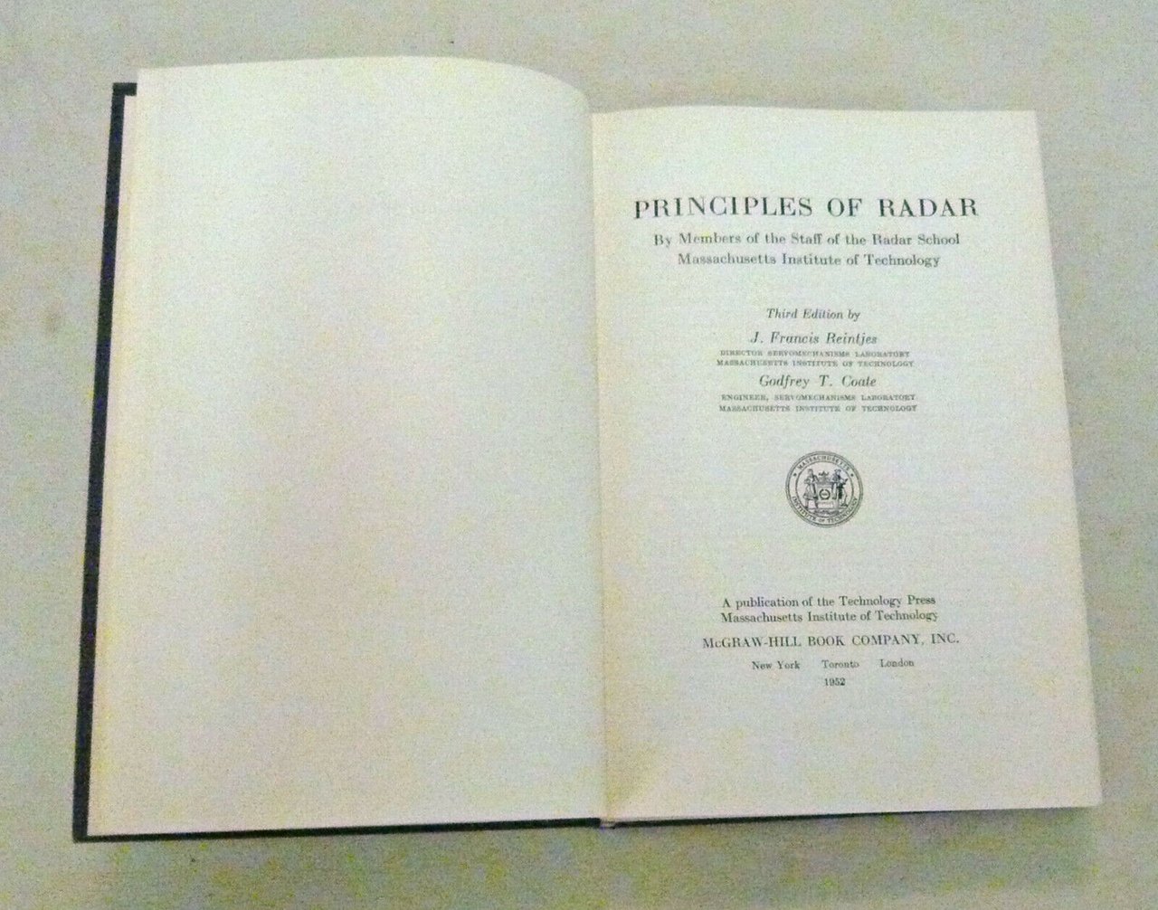 M.I.T.Radar School Staff,PRINCIPLES OF RADAR,1952 McGraw-Hill third ed.
