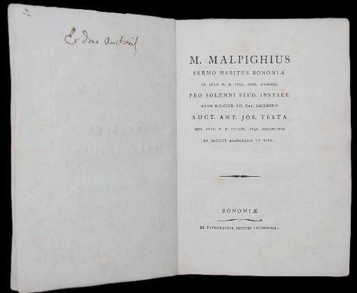 M. Malpighius sermo habitus Bononiae in aula m.r. Ital. stud. univers. pro solemni stud. instaur. anno 1810. VII. kal. decembris auct. Ant. Jos. Testa Med. Clin. P. P. Colleg. Ital. Disciplinis et Artibus Adaugendis LX viro.