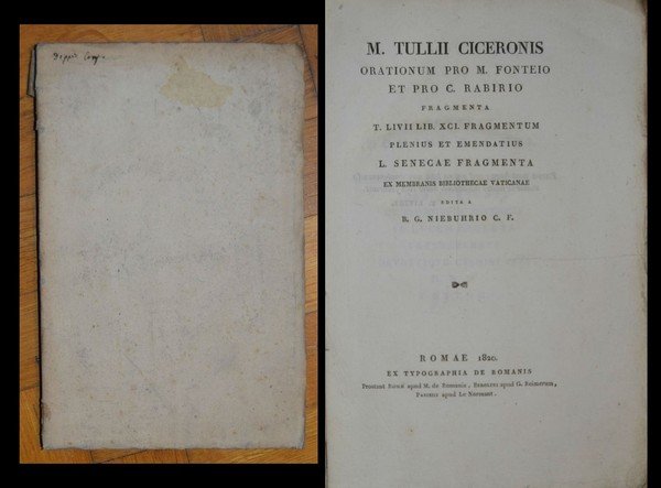 *M. Tullii Ciceronis Orationum pro M. Fonteio et pro C. Rabirio fragmenta T. Livii lib. XCI. fragmentum plenius et emendatius L. Senecae fragmenta ex membranis Bibliothecae Vaticanae. Edita a B. G. Niebuhrio C. F.