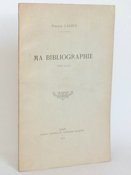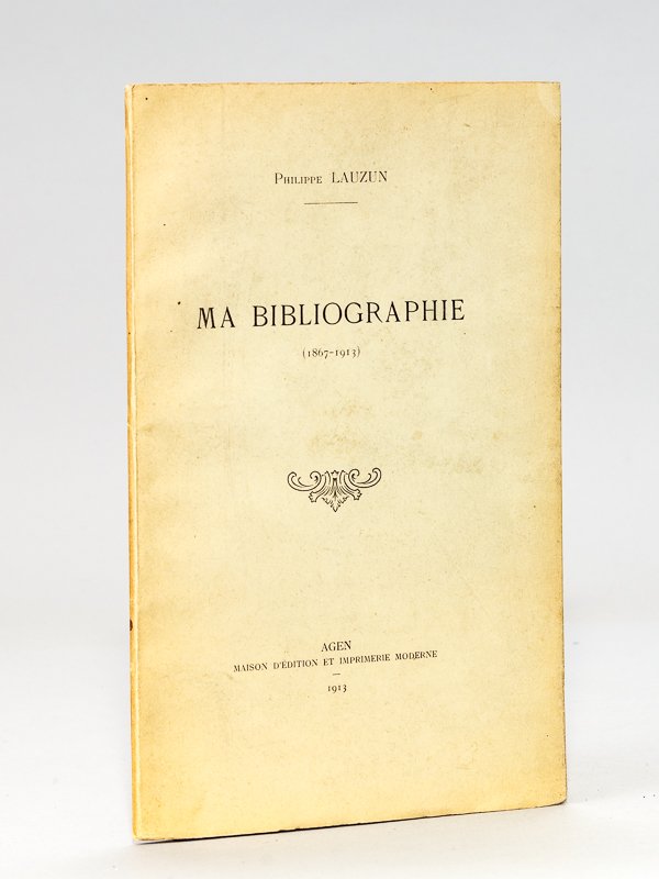 Avec un portrait de l'auteur en frontispice, 1 vol. in-8 br., Maison d'Edition et Imprimerie Moderne, Agen, 1913, 33 pp. Edition originale. Rare exemplaire de cette brochure bibliographique de Pierre Lauzun, Secrétaire Perpétuel de la Société des Sciences, Lettres et Arts d'Agen et Président de la Société Archéologique du Gers. Bon état (qq. rouss.)