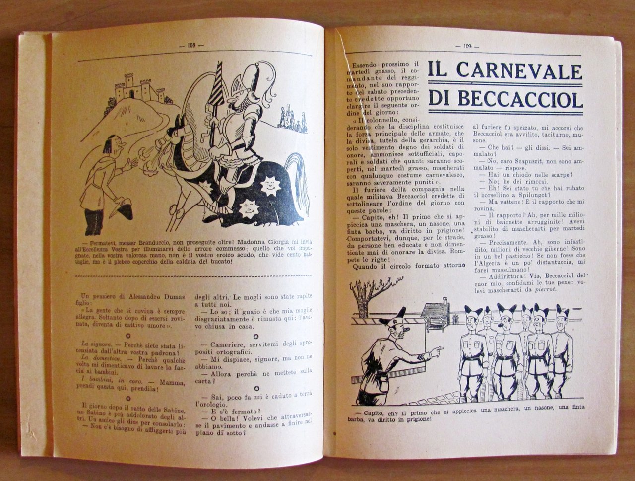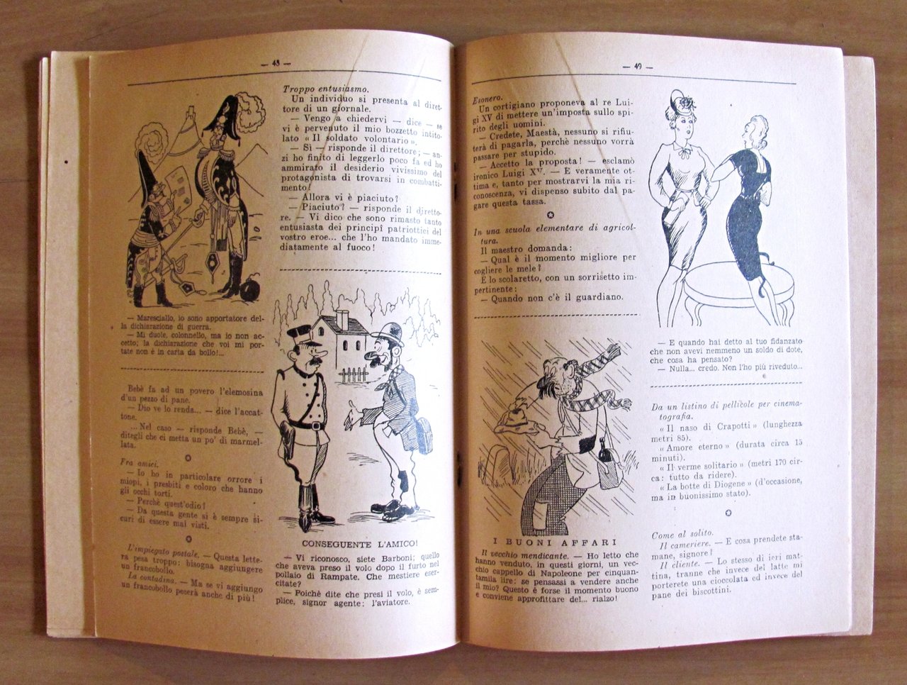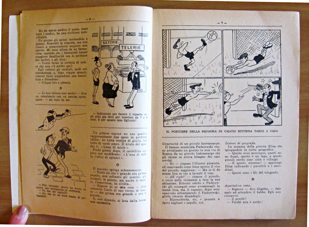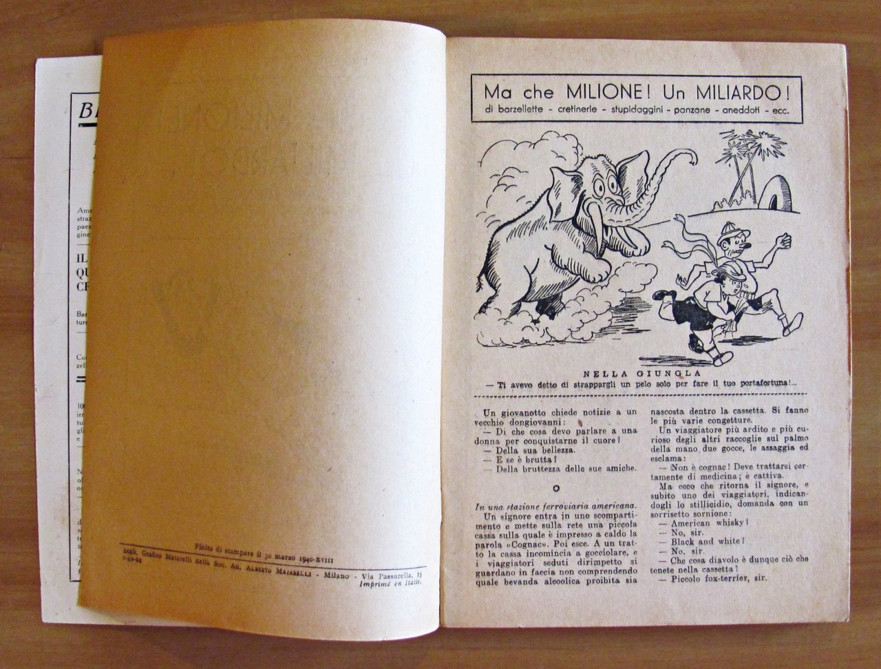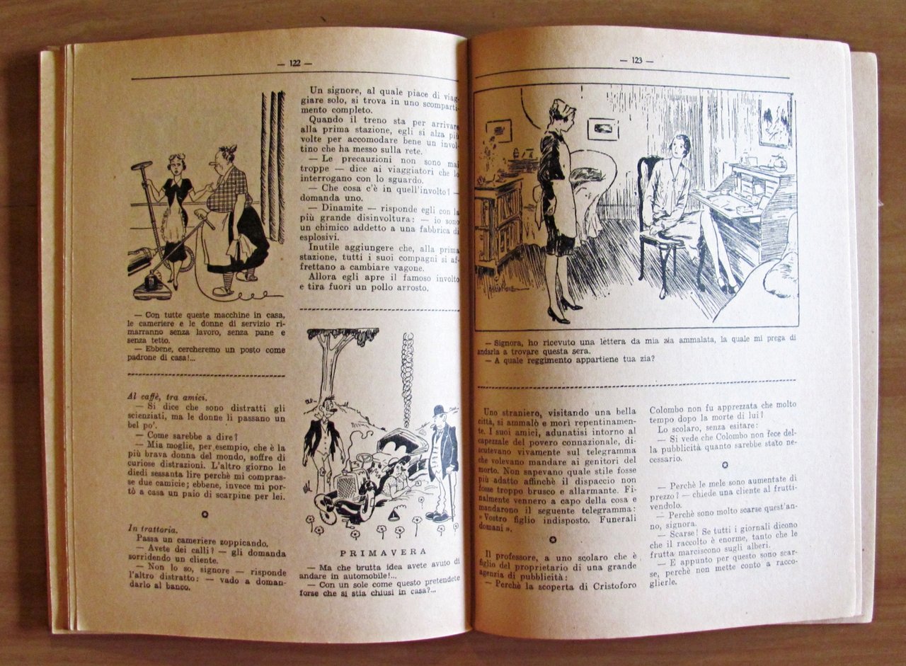Collana Biblioteca Umoristica N.8 di Barzellette, Cretinerie Stupidaggini, Panzane, Aneddoti, ecc. Moltissime divertenti illustrazioni in b/n n.t. a quasi tutte le pagine. Casa Editrice Sonzogno - Milano, 1940. Brossura editoriale con lievissime tracce d'uso al dorso. 15,5x21,5; pp.160. RARO e in OTTIMO STATO