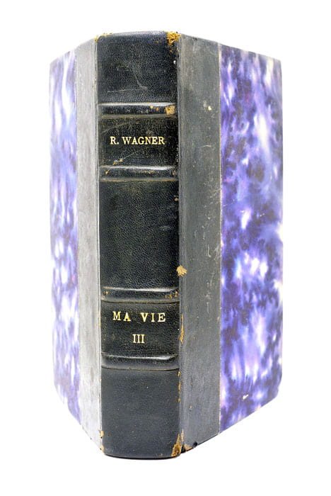 Tome III seul. 463 pages. 26 feuillets. (19x12 Cm). Demi-percaline. Dos à nerfs, titre et auteur dorés. Dos et coins légèrement émoussés. Ce tome, faisant partie de l'autobiographie de Richard Wagner, couvre les années 1850 à 1864, période cruciale dans la vie du compositeur et dans l'histoire de la musique. La traduction de N. Valentin et A. Schenk permet aux lecteurs francophones d'accéder à l'intimité de Wagner, ses réflexions, ses luttes et ses inspirations durant ces années. Pages un peu brunies, sinon exemplaire bien conservé. Tome 3 seul.