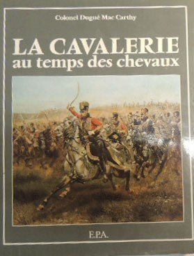 Dugué Mac Carthy, La cavalerie au temps des chevaux, E.p.a. Editions (Éditions Presse Audiovisuel), s. l. (ma stampato a Torino, presso le Arti Grafiche V. Bona) 1989, pp. 327, riccamente ill. b. n. e col., cm 30, tela ed.con titoli in oro al dorso e sovr. Pubblicazione in lingua francese. Volume ben documentato sulla storia della cavalleria, dall’antichità ai giorni nostri. Opera proveniente dalla biblioteca di un celebre pittore italiano contemporaneo. Legatura allentata, segno di piegatura all’angolo di qualche carta, macchioline di pittura su due pagine, le cui illustrazioni sono probabilmente state usate per trarre modelli per dipinti, ma nel complesso condizioni ancora accettabili.