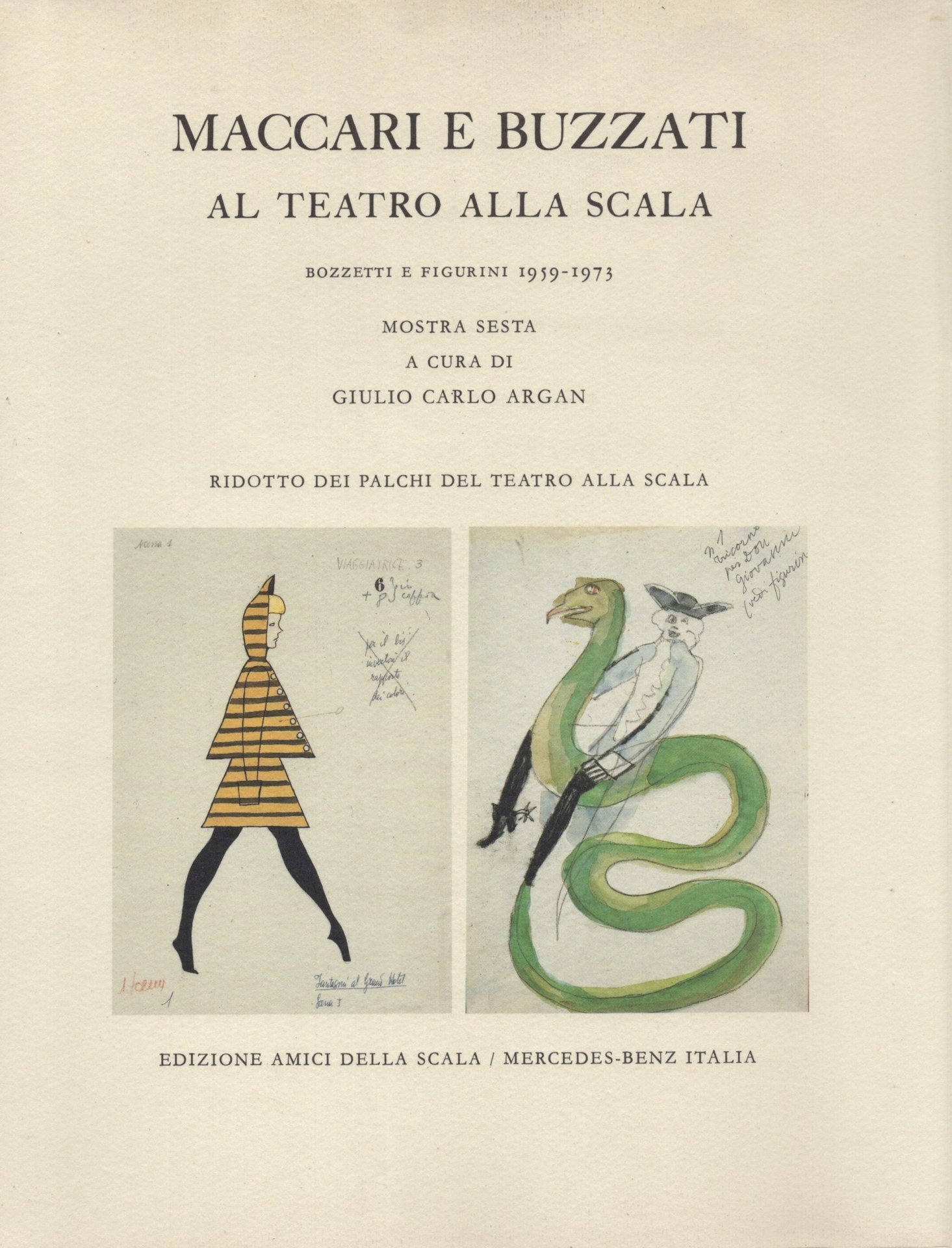 Maccari e Buzzati al teatro alla Scala. Bozzetti e figurini 1959-1973. Mostrra sesta a cura di Giulio Carlo Argan. Ridotto dei palchi del Teatro alla Scala