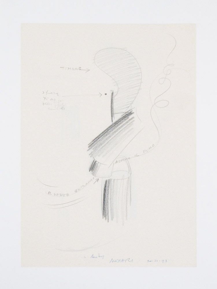 AUTOGRAFOTre disegni originali.CON AUTOGRAFO.Insieme in ottime condizioni di conservazione, allestito in raccoglitori in carta conservativa su misura, proveniente dalla collezione privata della curatrice del volume, la storica dell’arte Anty Pansera.Raccolta di tre matite originali di Bruno Munari, disegni di macchine inutili, relativi al progetto per la copertina del libro: «Anty Pansera. Storia del disegno industriale italiano» (Bari, Laterza, 1993, collezione «Grandi opere»). -- Due disegni in grafite, liberi a pieno foglio sulla medesima carta fronte e retro (carta 1), sono seguiti da un bozzetto a misura, in grafite e matita grassa, applicato su una sovracoperta di un libro già pubblicato nella stessa collana (carta 2) e dalla prova di stampa della copertina definitiva (240 x 170 mm). Data e firma autografa dell’artista in inchiostro blu «a Anty [Pansera] MUNARI 30.4.93» al recto della prima carta.