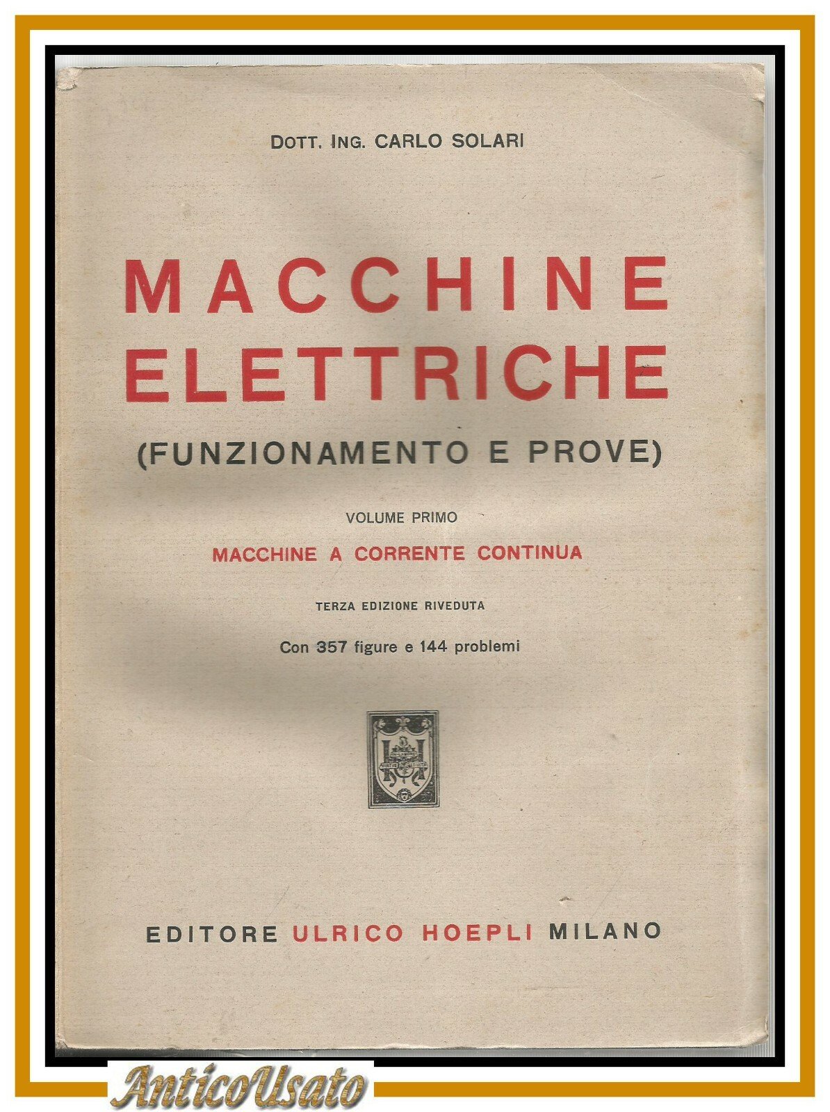 MACCHINE A CORRENTE CONTINUA di Carlo Solari 1946 Hoepli vol 1 elettriche libro