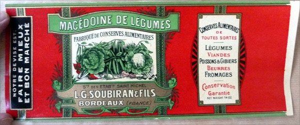 Macédoine de légumes. Une étiquette en chromolithographie pour une fabrique de conserves alimentaires.