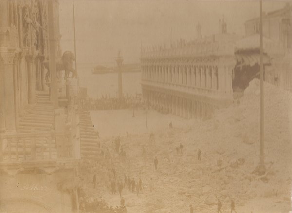 Macerie del Campanile di San Marco a Venezia. Fotografia originale dell'epoca all'albumina in grande formato.