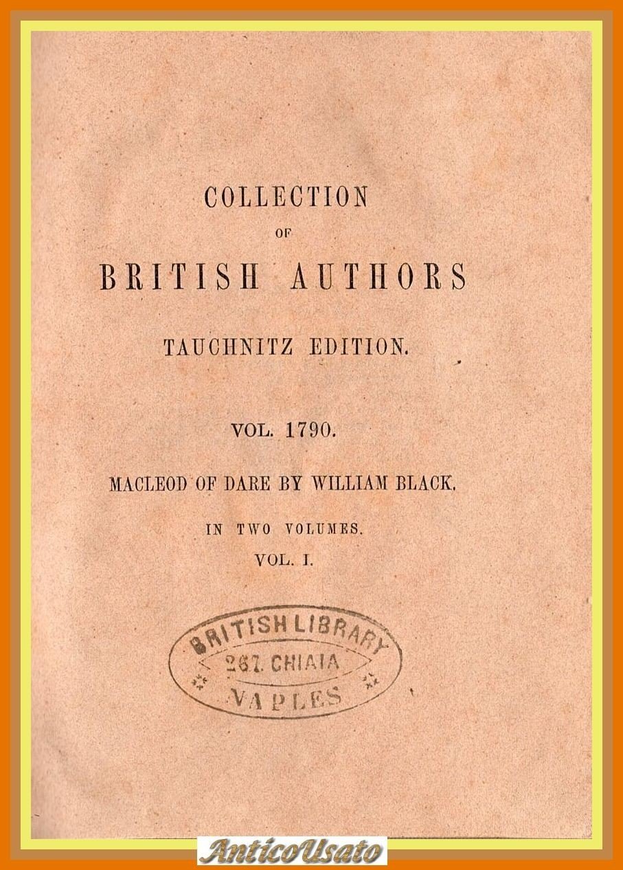 MACLEOD OF DARE di William Black 2 volumi rilegati in uno. collection of british authors Tauchnit”, Bernhard Tauchitz editore, 1878 . 303 + 280 pagine. Copertina non editoriale in tutta tela. Dimensioni: 12 x 15 cm. Stato di conservazione: buono (copertina sciupata, pagine ingiallite) Libro antico