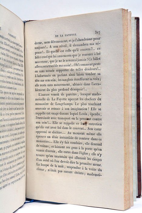 VIII. 359 pages. (20,5x13 Cm). Veau marbré de l'époque. Dos lisse orné. Coins et coiffes légèrement émoussés. Roman historique de Madame de Genlis, dédiée à son amie la Comtesse d’Harleville. Exposant les raisons du choix de ce personnage l’auteur précise notamment : "Tous les mémoires du siècle de Louis XIII s’accordent à donner à Mademoiselle de La Fayette un si beau caractère, une âme si grande et si pure, qu’il m’a toujours paru qu’il étoit impossible de choisir pour un roman historique une héroïne plus intéressante et plus pure". Petit cachet sur le titre. Bel exemplaire à part quelques très rares taches.