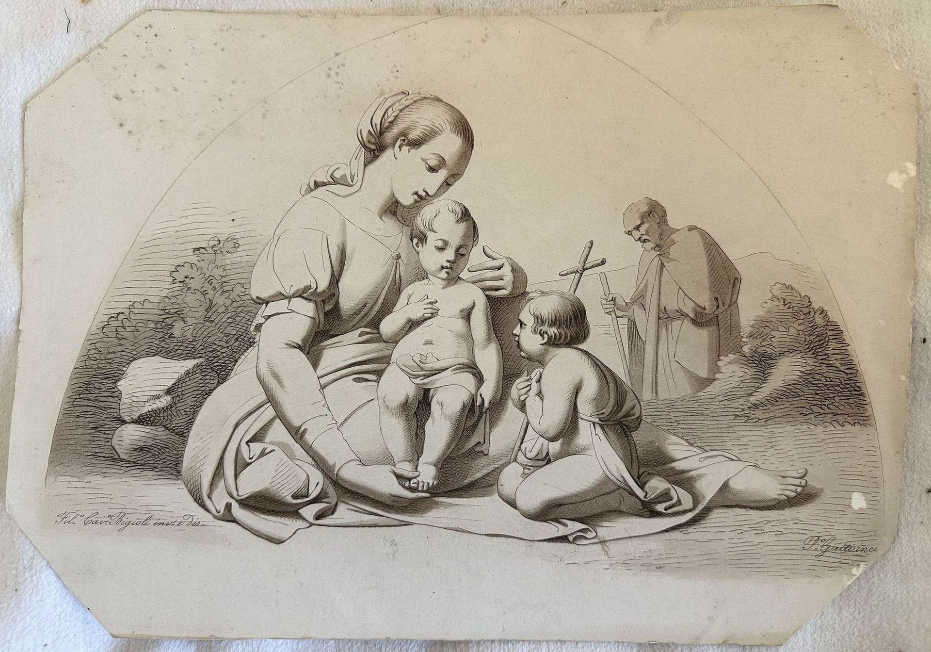 MADONNA CON IL BAMBINO SAN GIUSEPPE E SAN GIOVANNINO Fil. Cav. Bigioli inv. e dis. P. Gatti inc.