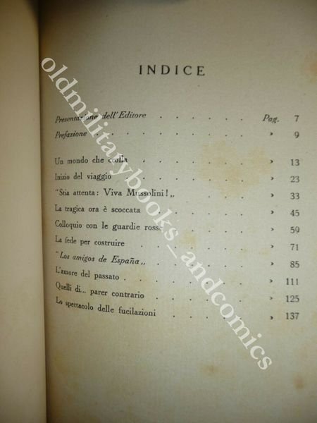 DESCRIZIONE: Sperling & Kupfer Milano 1937, br. ed. ill. col. con alette, pp. 144 con 61 ill. b/n f.t. in 8°. L'autrice fu forse l'unica giornalista italiana che restò a Madrid dai primi di luglio alla fine di settembre del 1936. CONDIZIONI: Ottime, tracce di fox. PESO / WEIGHT: 400 gr. without package