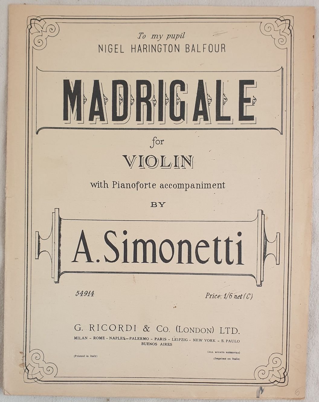 MADRIGALE FOR VIOLIN WITH PIANOFORTE ACCOMPANIMENT