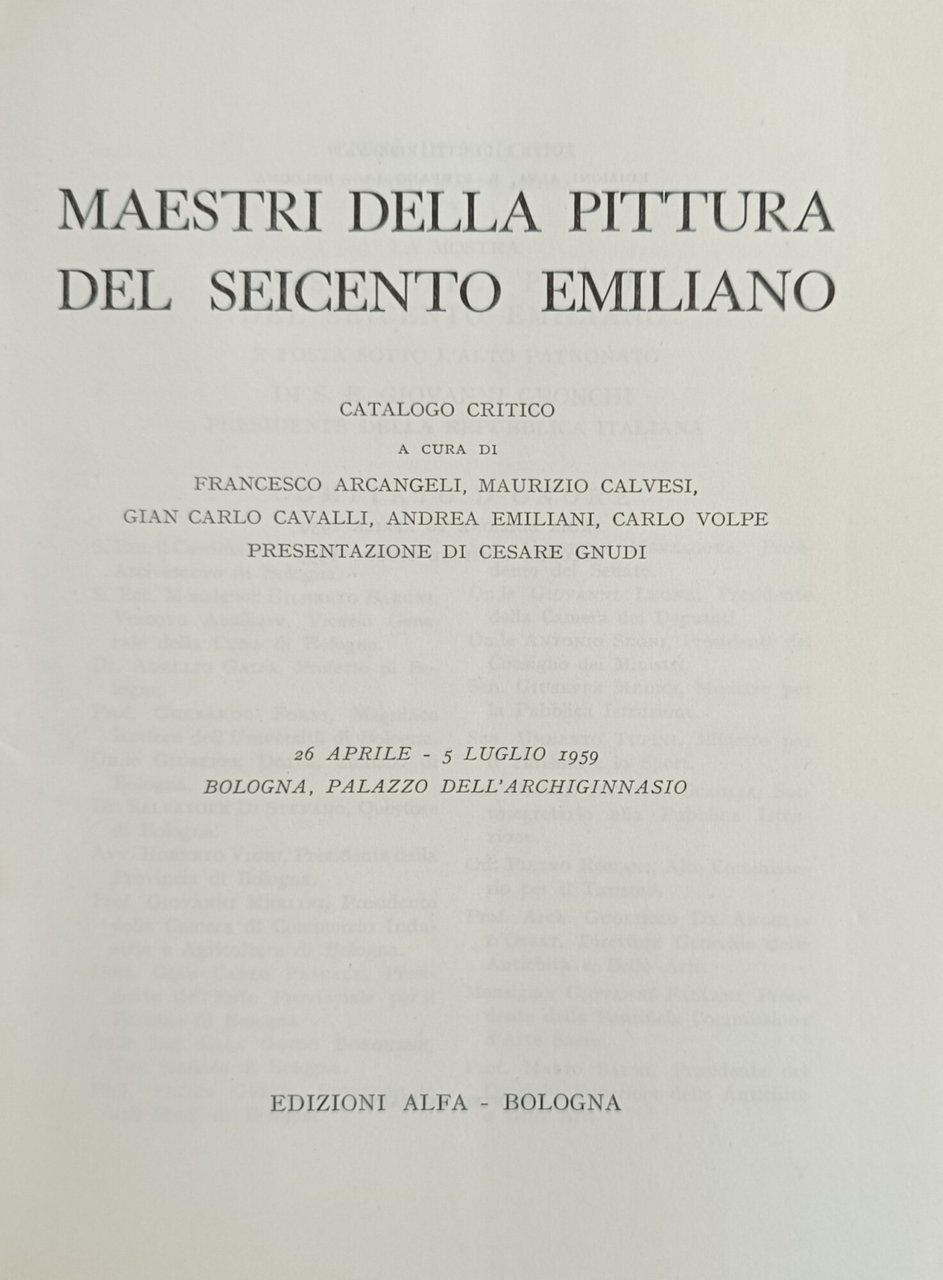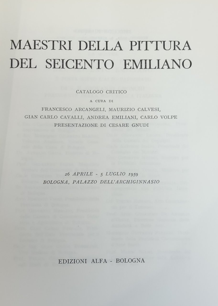MAESTRI DELLA PITTURA DEL SEICENTO EMILIANO. CATALOGO CRITICO