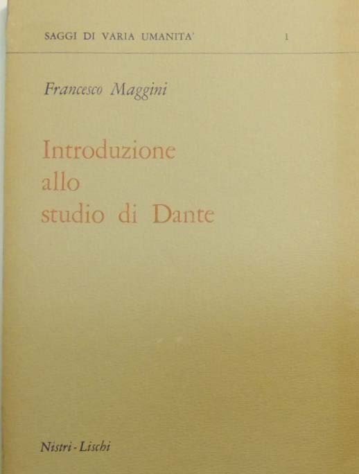 Francesco Maggini, Introduzione allo studio di Dante, Nistri-Lischi, Pisa 1965, pp. 138, cm 21, br. ed. Collana Saggi di varia umanità, n.s., n. 1. Lievissime tracce d’uso, per il resto ben conservato.