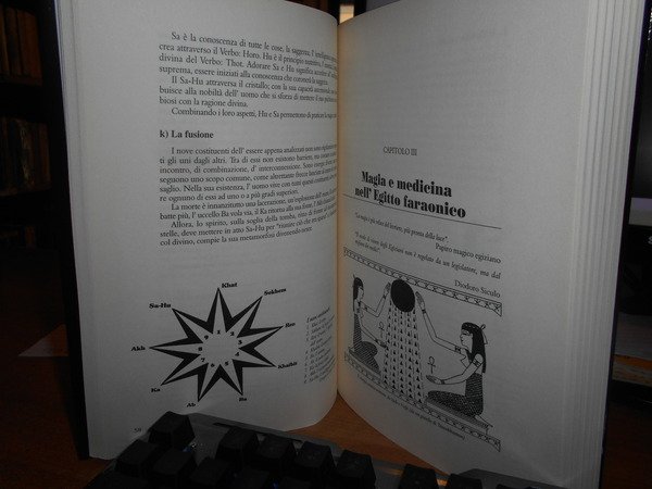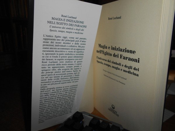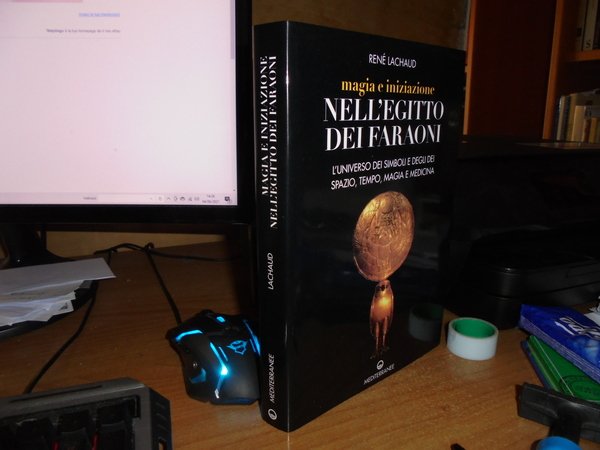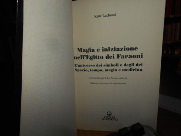 René Lachaud. Roma, Edizioni Mediterranee, 1997. Magia e iniziazione. Nell' Egitto dei Faraoni. L' Universo dei simboli e degli Dei spazio, tempo, magia e medicina. In-8°, cart. edit. con sovracopertina ill. a col. 275 pp. con numerose illustrazioni n.t. e 32 a colori in tavole f.t. Come nuovo. Uff. stanzetta mob. a destra.
