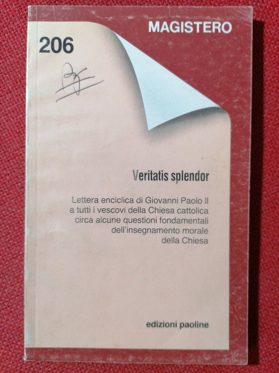 Magistero n. 206 - Veritatis splendor (lettera enciclica di Giovanni Paolo II a tutti i vescovi della Chiesa cattolica circa alcune questioni fondamentali dell'insegnamento morale della Chiesa), ed. Paoline 1993 Buone condizioni generali (si inviano ulteriori foto su richiesta). Disponibili due esemplari.