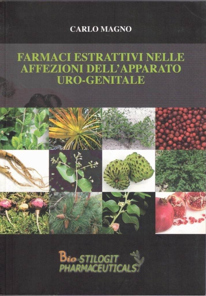 Carlo Magno, Farmaci estrattivi nelle affezioni dell’apparato uro-genitale, Bio Stilogit Pharmaceuticals, s.l. 2008, pp. 95, ill. b.n., 4 c. di tavv. f.t. ill. col., cm 21, br. ed. Con la collaborazione di: Giuseppina Anastasi, Giuseppe Ciccarello, Alessandro Galì, Antonino Inferrera, Alessia Militello, Giuseppe Mucciardi. Prefazione di Giuseppe Morgia. Indice: Prefazione, Introduzione – Breve storia della fitoterapia – Infezioni delle vie urinarie e fitoterapia – Ipertrofia prostatica e fitoterapia – Fitoterapia in andrologia – Calcolosi e fitoterapia – Fitoterapia e neoplasie urologiche – Tavole a colori. Perfetto.