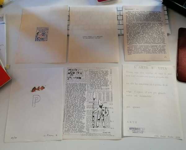 120 p. ca., 26 cm, cartellina editoriale a colori con tre laccetti in tessuto. Condizioni : USATO - Stato : Ottimo. Altre note : Contiene un fascicolino in bross.: "PELI, Romano - Felt-games" con una tavola formato schermo TV con schermata di videogame a colori. Inoltre 55 foglietti sciolti spesso opere originali di artisti dell'epoca con numerose firme, numeri di tiratura e personalizzazioni d'artista di ciascuna opera. IN ICCU, su Wikipedia e nell'opera: "Marginali: iconografie delle culture alternative di Carlo Branzaglia" si dà l'errata informazione che la rivista sia del 1982, ma in realtà come evidente dall'opera che offriamo il primo numero (appunto il numero zero) è del giugno 1981. Tiratura di 200 esemplari. Copertina di Mino Lusignoli con motivo di Garibaldi alla batteria, al numero hanno collaborato (spesso con opere) gli artisti: Baccelli, Baroni, Becciani, Bedeschi, Capolongo, Capuano, Carleschi, Castaldo, Cavellini, Chiarantini, Cipriani, Conti, Corsini, De Riz, Diotallevi, Di Scalzo, Foschi, Franceschi, Gini, Gubinelli, Guerini, gruppo Intermedia, Luigetti, Maggi, Marino, Minarelli, Orsatti, Pedicini, Peli, Rosamilia Beppe e Enzo, Rossi, Scirpa, Simoni, Talpo, Theatre du Silence, Tondi, TOnoli, Venuti, Versari. Rarissimo.