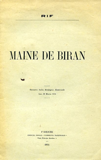 Maine de Biran. Estratto dalla Rassegna Nazionale fasc. 16 Marzo 1914