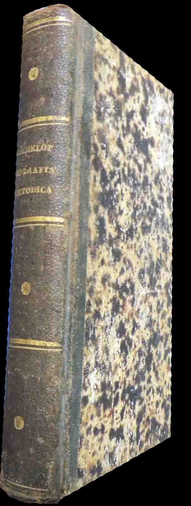 Nuova geografia metodica destinata all’insegnamento degli allievi de’ collegi, delle case d’istituzione, e di pensione da’ signori Achille Maissas ed Augusto Michelot, prima versione italiana per cura dell’avvocato Cosmo Assanti, Da’ Tipi di Ruberto e Lotti, Napoli 1832, pp. 440, cm 20, legatura in mezza tela con titoli e filetti oro al dorso, piatti in carta marmorizzata etagli spruzzati. Lievi tracce d’uso alla legatura, qualche leggero segno di lapis alla prima carta di guardia, tenui ombre di vecchia gora al margine inferiore delle prime carte, fioriture, minime bruniture, ma nel complesso più che buona copia. Raro.