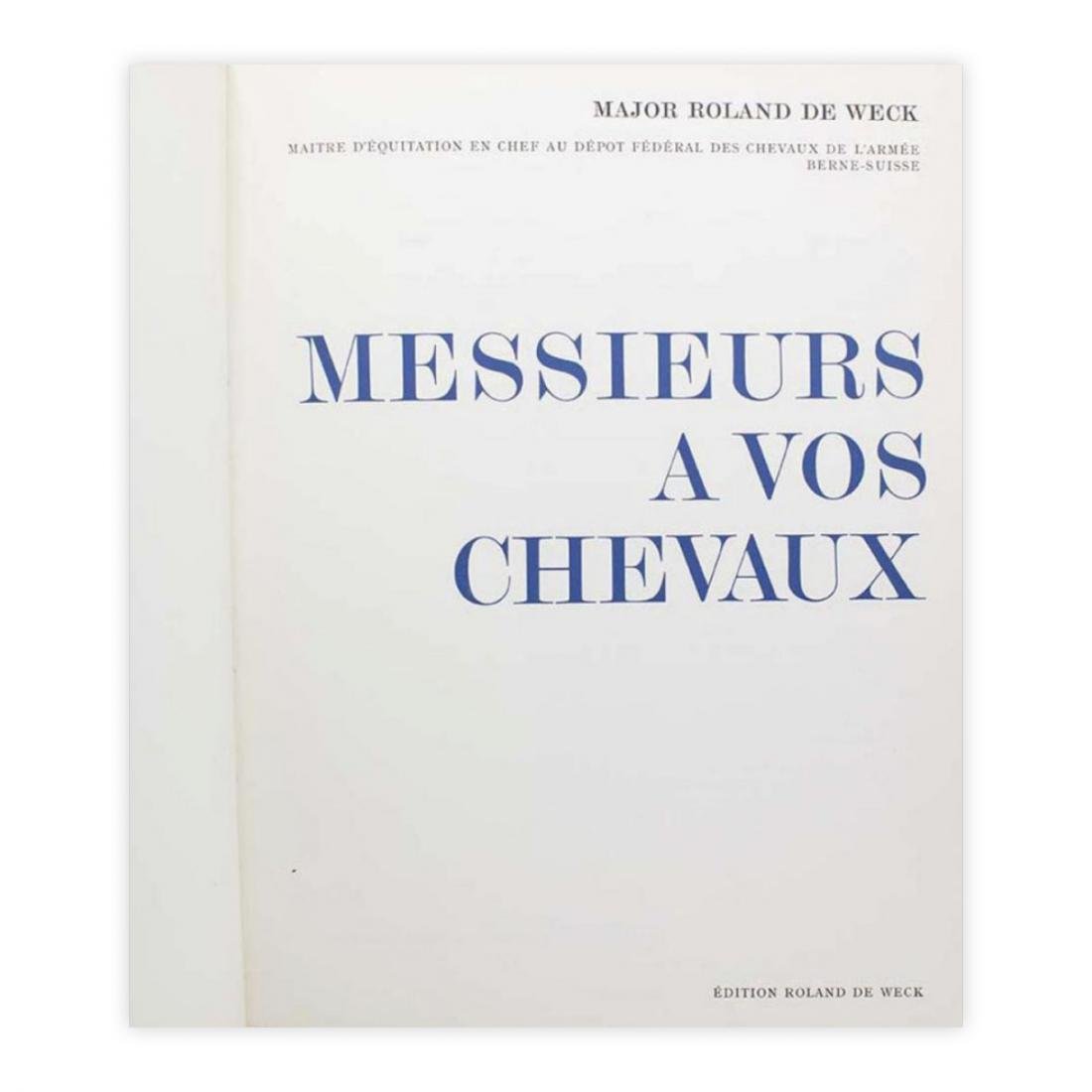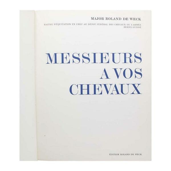 Autore: Major Roland De Weck Titolo: Messieurs a vos chevaux Edizione: Major Roland De Weck, Berne 1960 Dimensioni: 25,5 x 33 cm c.a. Pagine: 150 Copertina: Cartonato Condizioni: Ottime come da foto
