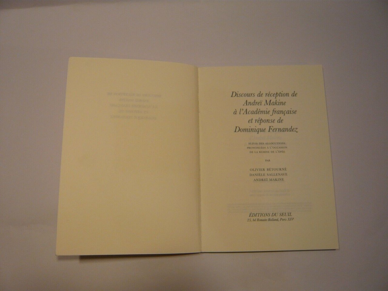 DISCOURS DE RECEPTION DE ANDREI MAKINE A L’ACADEMIE