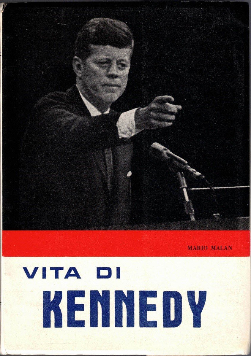 Mario Malan, Vita di Kennedy, Tip. S.T.E.V., Roma s.d. (ma 1964 ca.), seconda ed., pp. 207, 12 c. di tavv. ill. b.n., cm 21, br. ed. con alette. Ordinarie tracce d’uso, minime fioriture, lieve brunitura della carta, per il resto ben conservato.
