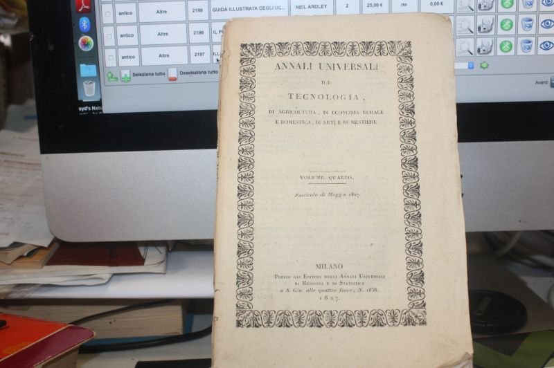 Codice 2206, , ANNALI UNIVERSALI, DI TECNOLOGIA, DI AGRICOLTURA DI ECONOMIA RURALE E DOMESTICA D'ARTI E DI MESTIERI, , VOLUME QUARTO, FASCICOLO DI MAGGIO 1827, MILANO PRESSO GLI EDITORI DEGLI ANNALI UNIVERSALI DI MEDICINA E DI STATISTICA, A S.GIO ALLE QUATTRO FACCE, CONSERVAZIONE DEI CEREALI IN FRANCIA DEL DOTT LOMENI, DEI MEZZI INFLUENTI A LIMITARE IL COSTO DE BOZZLI DEL DOTT LOMENI, DELL'HOLCUS SPICATUS LINN DETTO DA NOI PANICO INDIANO, MALATTIE DEI BACHI DA SETA ED ALTRI OGGETTI RELATIVI ALLA LORO EDUCAZIONE , ESPERIMENTI ESEGUITI INTORNO ALL'ACERO TARTARICO PROPOSTO COME SUCCEDANO AL GELSO ONDE NUTRIRE I BACHI DA SETA DEL DOTT GERA, ETC.
